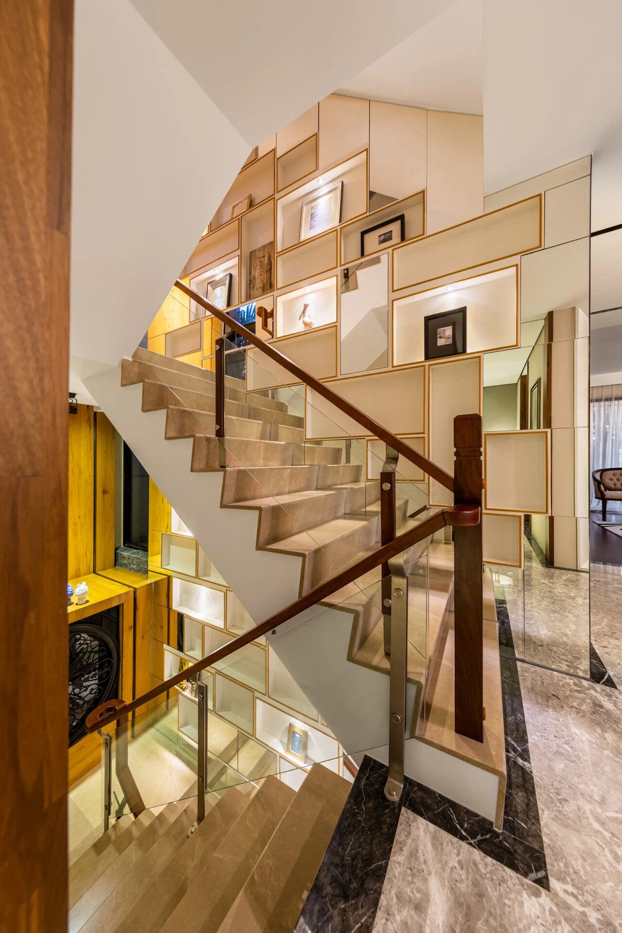 Given that this is a three-generation household, the design considers various critical factors, such as Feng Shui principles, storage requirements, and privacy considerations, to ensure that the space is conducive to the diverse needs of the occupants. The design is tailored to meet the specific requirements of each resident, thus ensuring that the space is both functional and aesthetically pleasing. Overall, the design is a testament to the art and science of interior design, where form and function are seamlessly integrated to create a beautiful and functional living space.
